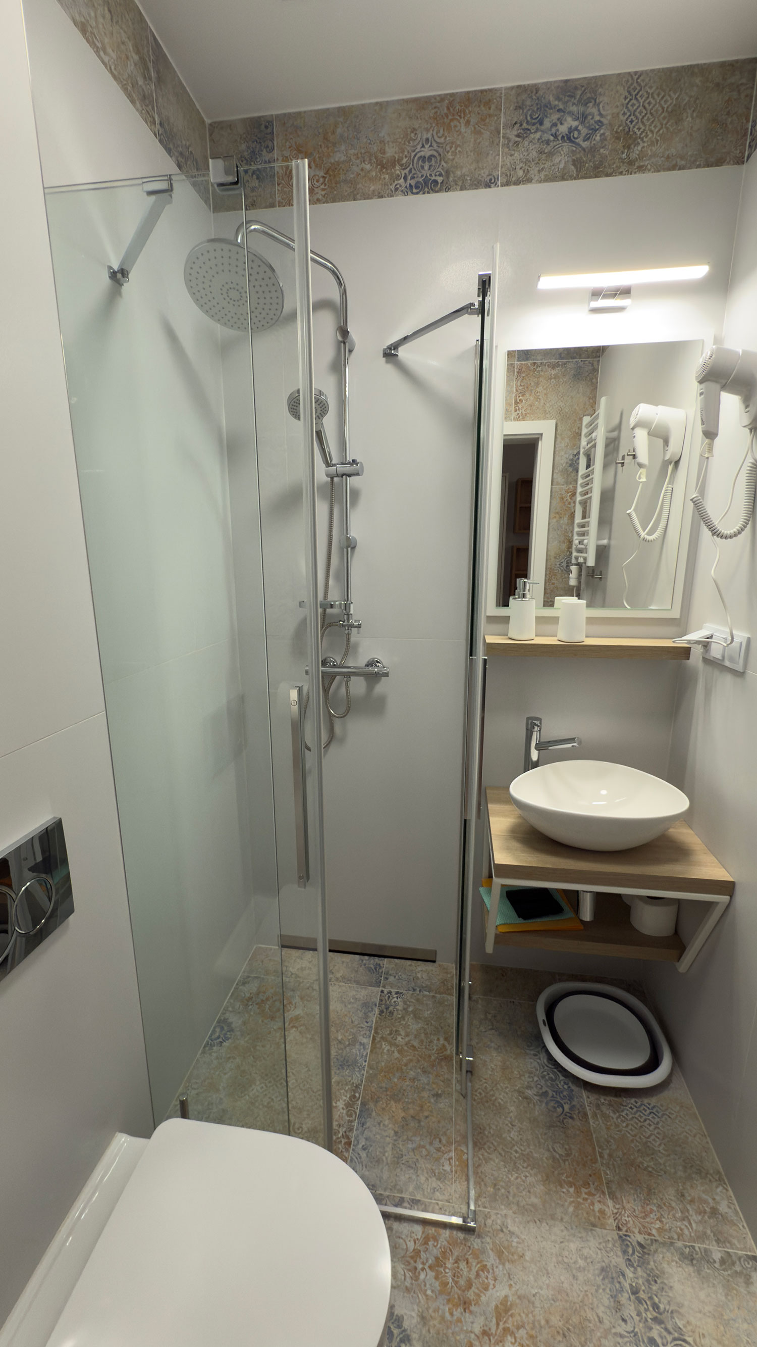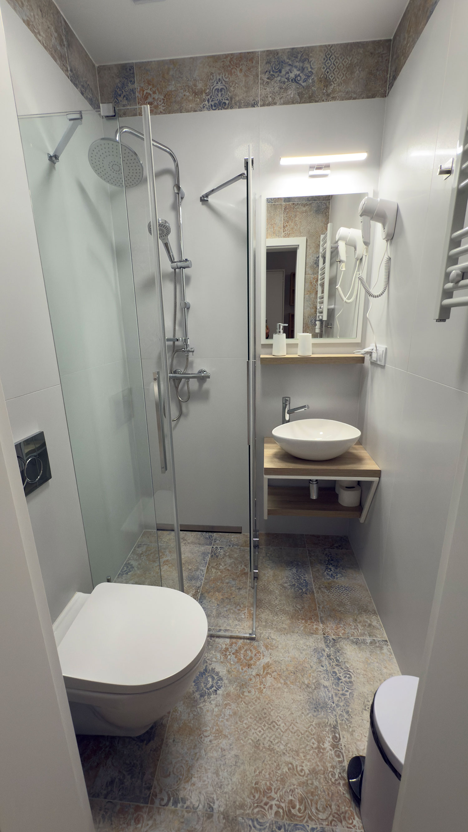 - Deska do prasowania oraz suszarka balkonowa w każdym z pokoi